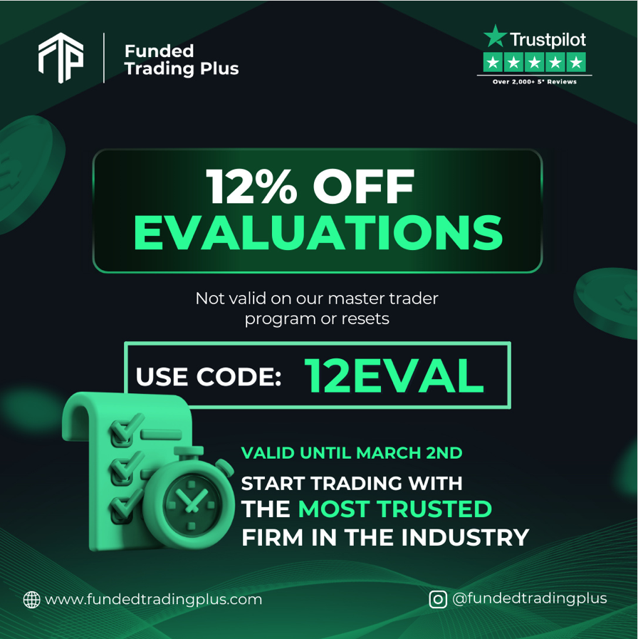 This February, Funded Trading Plus is giving traders an exciting offer to take their trading careers to the next level with a special 12% discount on all evaluations. The leading prop firm, known for its trader-focused services, is offering this limited-time promotion to help aspiring traders unlock their potential and start their journey toward securing a funded trading account.