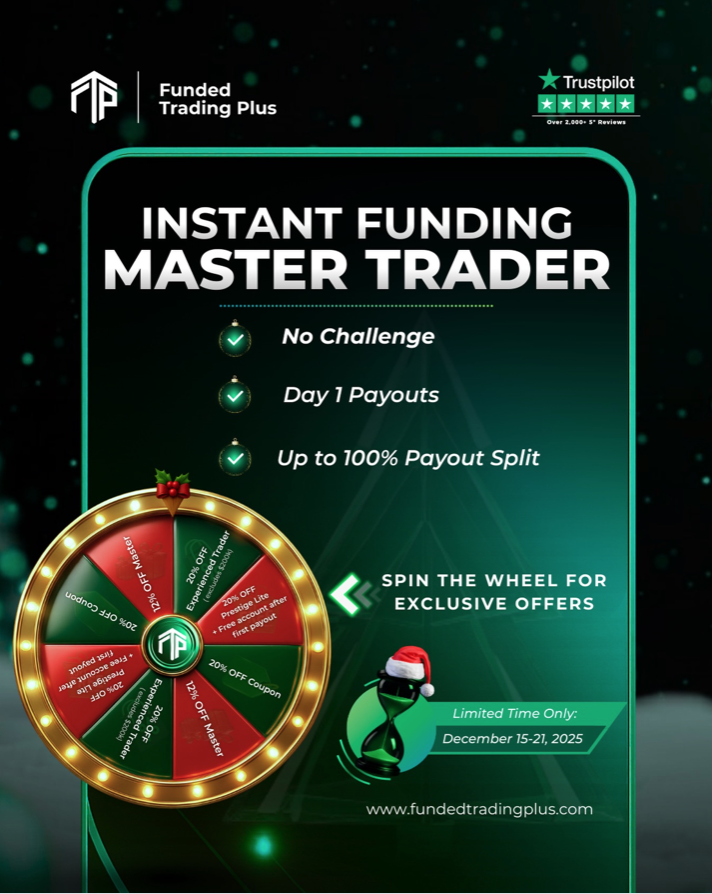 Funded Trading Plus has rolled out another seasonal offer through its ongoing Giftmas Prize Wheel, giving traders a chance to access instant funding via the firm’s Master Trader program. The campaign invites participants to spin a digital prize wheel for rewards after entering their email address, with prizes revealed instantly. According to the firm, the current round of Giftmas rewards is available for a limited period and will run until Sunday, December 21.