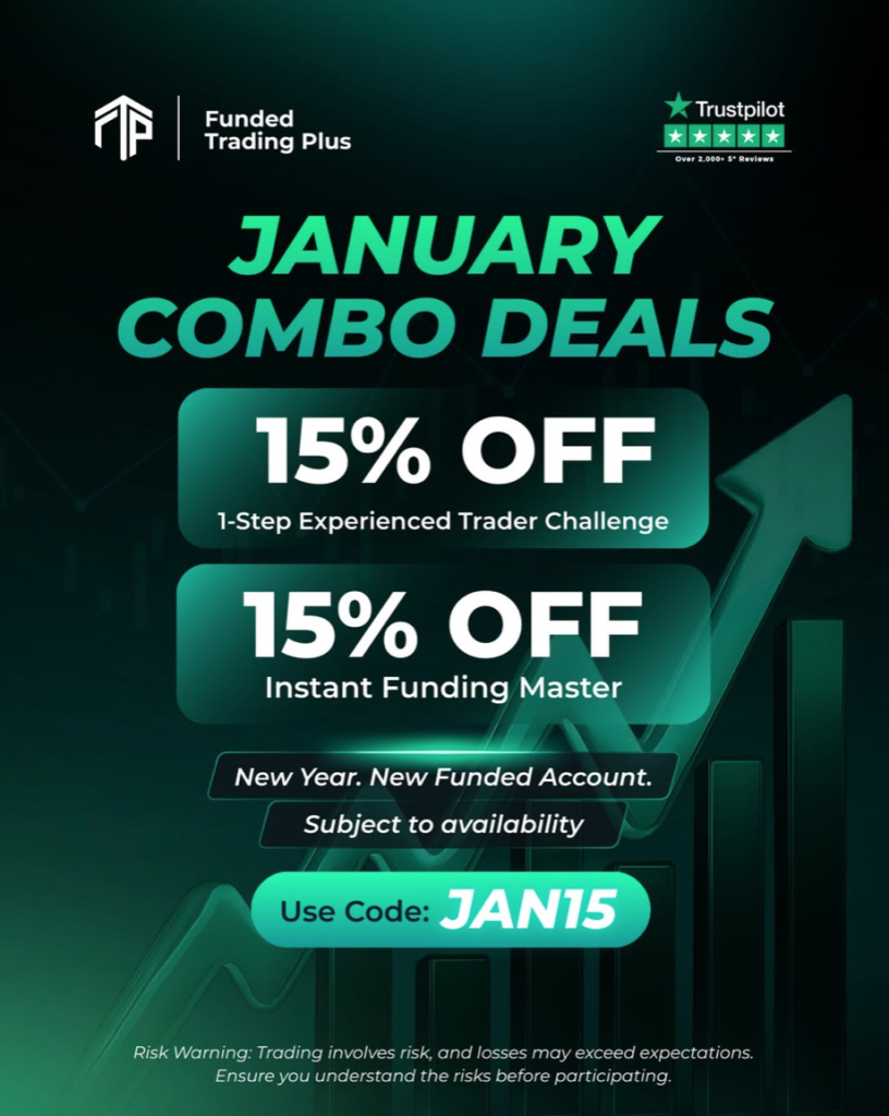 Funded Trading Plus has started 2026 with a new January offer for traders seeking funded accounts at a reduced cost. The firm announced a 15% discount on two of its most selected programs: the 1-Step Experienced Trader Challenge and the Instant Funding Master. The offer is available for a limited time and can be accessed using the promo code JAN15, allowing traders to begin the new year with lower entry fees.